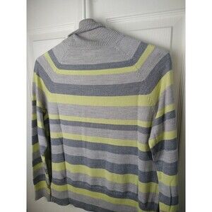 Pendleton woman's lightweight grey turtleneck with green stripes in good condition. Long casual sleeve. Ribbed wrist and hemline
