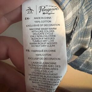 Penguin blue and green plaid short sleeve button down shirt in classic fit. 100% cotton. Gently used size large.