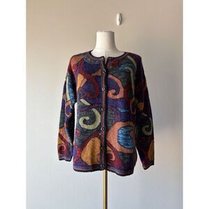 peruvian connection artsy multi color alpaca button front cardigan sweater