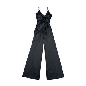 petal + pup black satin wide leg faux wrap jumpsuit silky elegant flowy size XS