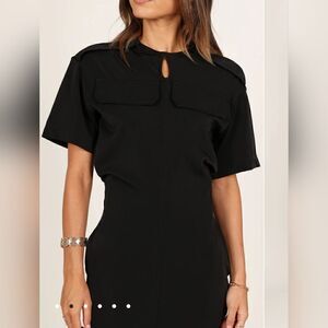 Make a statement in this midi length dress! A subtle front cut out detail adds some extra flair, with a non functional chest pocket adding a fun element of style. This is the perfect workwear option for those days when you want to look your best!