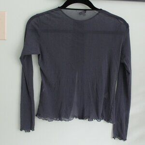petit pois - sheer button up long sleeve, material is flexible and stretchy, with frilled sleeves and ends, one end of the tag is detached, in good condition, is a very cute cover up top