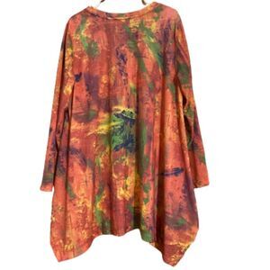 philosophy WOMEN’s VIBRANT PINK MULTI ABSTRACT PRINT ASYMMETRIC FLOWY LONG SLEEVE TUNIC TOP Size-XXL/2XG