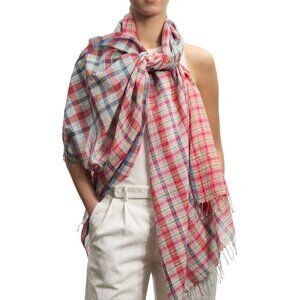 Épice Paris Sustainable Cotton Stole Pink Coral Floral Fringe Size 71"x26"