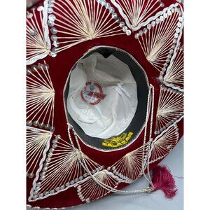 piggalle salazar Red Velvet Sombrero hat Intricate White Embroidery Tassel XL