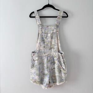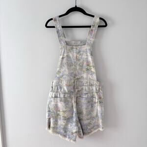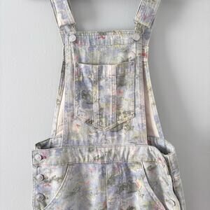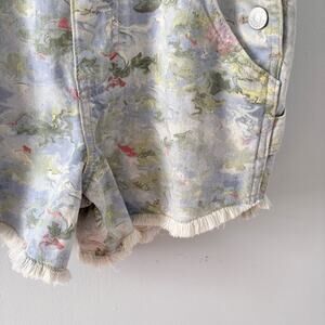 pilcro - cut off short overalls denim floral print watercolor anthropologie