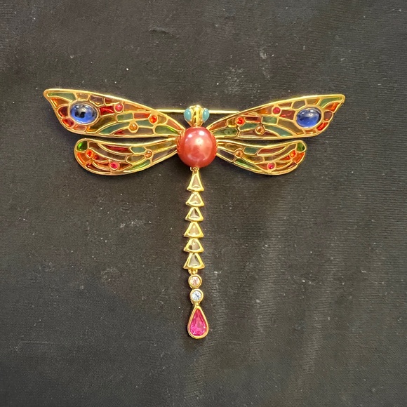 dragon fly pin with stones, 3 and 3 quarter wide by 3 inches long
