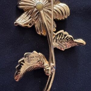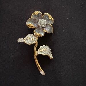 enameled flower brooch with crystals 1 and 1 half by 2 and 1 half size