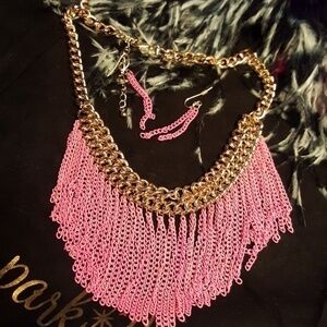 Nacklace and earrings set. Gold nacklace with pink chains. Earings included. NWT. (#11)
