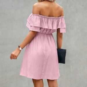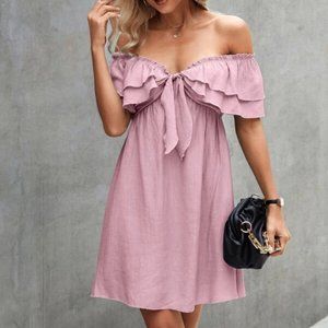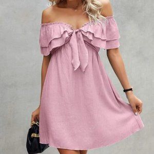 pink Layered Ruffle Off Shoulder Knot Front Dress