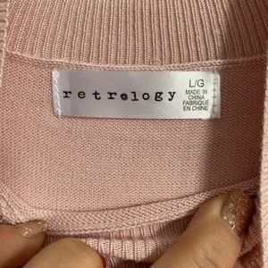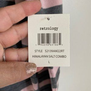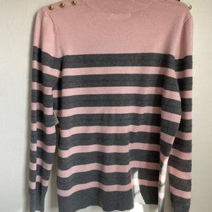 retrology woman pink and grey stripped sweater with gold buttons on the shoulders size large mock neck sweater brand new with tags.