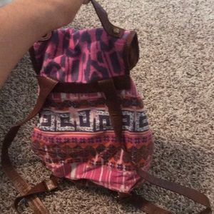 it is a pink mini backpack with a big pocket and a little pocket. in really good. condition and leather is barely worn out. Willing to accept offers :)