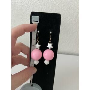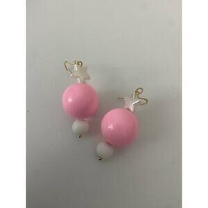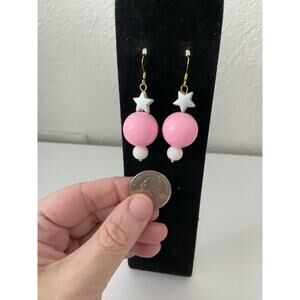 Fun stylish circus inspired pink and white round bead earrings with star made with new and up cycled beads great for school going out parties work holidays vacation gifting skater grunge goth hippie boho retro rave casual twee cottage coastal grandmother art deco bohemian softgirl light academia ecofashion