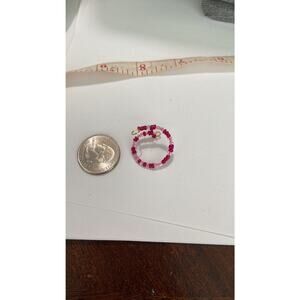 Super cute bright pink adjustable size stackable pink bead ring made with all new materials Upcycled beads great for going out parties vacation gifting school work streetwear twee retro 90s boho casual preppy punk grunge goth skater Ravi Star Jewelry Co sustainable fashion