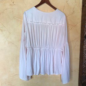 pink blouse: -button up -flowy sleeve -light pink size: large but fits like a medium
