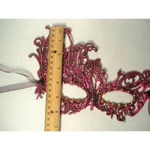 hot pink fuschia lace mask with rhinestones. this is a soft lace embellished mask.