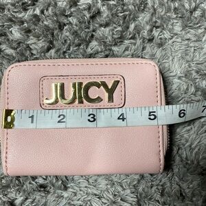 pink juicy couture wallet. The zipper pull is missing but does not affect the zipper in any way, please view the pictures for the exact condition. Wallet is in excellent condition Tb