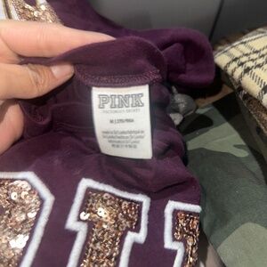 This is an amazing sweatshirt one of the hardest to find but worth to buy , the logo it has in front of it is super cute with so much bling on the sides of the arm and in the logo