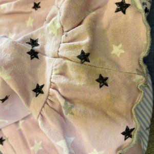 Pinkish Purple Ruffle Girl size 7 long sleeve top with gray, white and black stars. Play condition due to a barely noticeable stain on the front and spots on one cuff.Spots have not been treated. Smoke free home.