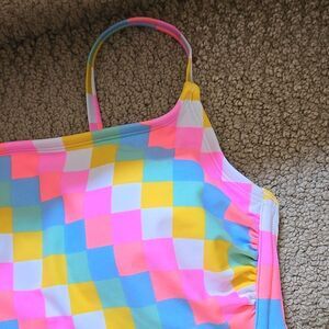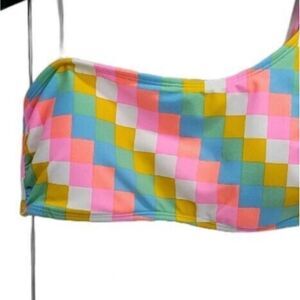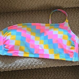 pink/yellow/blue checkered pattern by New Xhilaration bikini top sz d/dd