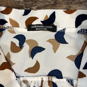 Textured blouse. Ties softly in front from the collar. Slight ruffle to the sleeves.