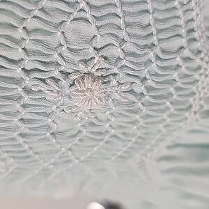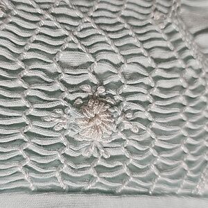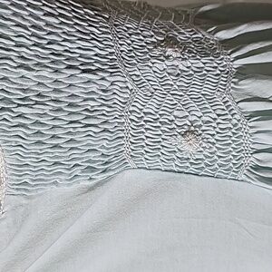 This fabulous night dress is in very good condition and quality. Beautiful smocking with little daisies. Wide 1 3/4 straps trimed in lace. curly healing. prima so soft cotton. Hand-made in Peru. size medium. Pit to pit flat measurement is 16". The top to bottom length is 46". very clean, excellent condition and quality.