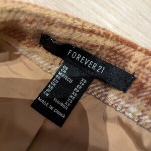 plaid mini skirt high-waisted A-line brown beige wool texture lined