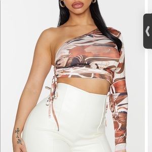 Pretty Little Thing Marble Crop, Size Small worn once