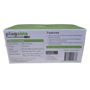 The Plugable 7-Port USB 3.0 Hub expands USB connectivity by enabling up to seven USB 3.0/3.1 Gen 1, 2.0 and 1.1 devices to be added to any USB-A 3.0/3.1 Gen 1 or 2.0 port on a desktop, laptop, or tablet computer. Supporting standard USB 3.0/3.1 Gen 1 transfer rates up to 5 Gb/s, this hub allows data to move quickly between devices, and is ideal for high-throughput accessories such as USB external hard drives, flash drives, and USB graphics adapters. A 36W AC adapter is included. The matte finish resists fingerprints, while a physical on/off switch allows for easy power control.