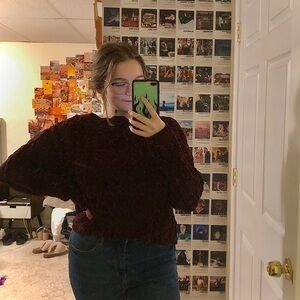 tags: plum purple chenille material sweater soft fall aesthetic trendy