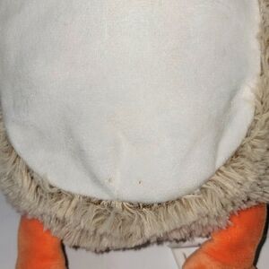 This darling stuffed animal plush owl is 12" long, has a rattle inside and is in great gently pre-loved condition. I note just those couple of tiny spots on his tummy. I have spray sanitized him as I do with all of my found treasures but have not washed him. From Blankets & Beyond.