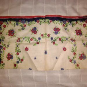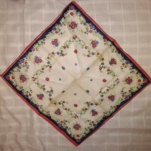 Floral, red, blue, cream and green hanky. Nice button down shirt pocket square.
