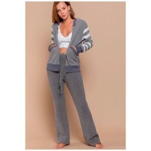 Super soft fleece zip up Hoodie with Striped sleeves and hood.