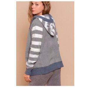pol Fleece Hoodie with Striped Sleeves And Hood