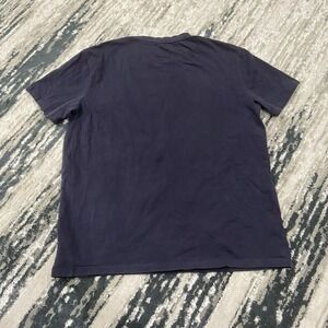 The product is a men's Polo Ralph Lauren T-shirt in blue, size large. It is made of cotton and features a regular fit, short sleeves, and a crew neckline. This classic button-up shirt is perfect for casual styling and is a versatile addition to any man's wardrobe. The navy blue color adds a touch of sophistication to the overall look, making it suitable for various occasions.