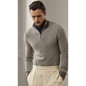 polo ralph lauren cashmere birds eye Sweater Gray Quarter Zip @M3