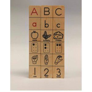 polyblox totems Montessori learning S.T.E.M learning home school blocks. sign language , letters, English language stacking blocks .