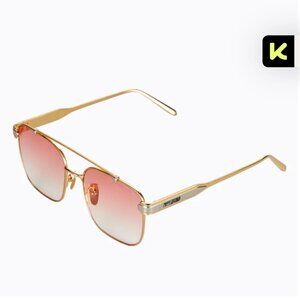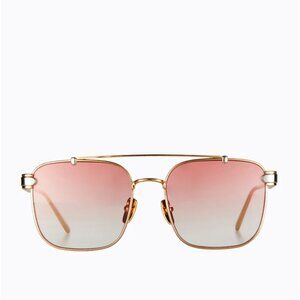 Unisex oversized metal aviators in gold with accents of silver on the temples and brows. 100% UV protected pink gradient lens with CAT 1 rating.