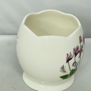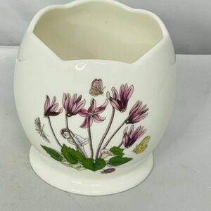 Elevate your home decor with this exquisite Portmeirion Botanic Garden Votive Candleholder featuring a delicate cyclamen design with a charming ladybug. Crafted from high-quality porcelain, this egg-shaped candle holder is not only elegant but also durable. Perfect for all occasions, whether it's a romantic dinner or just a cozy night in, this candle holder will create a warm and inviting atmosphere. Displaying a beautiful botanical pattern, this candle holder is a decorative collectible that will add a touch of sophistication to any room. It's ideal for collectors and enthusiasts alike, and it will make a great addition to any collection. Don't miss out on the chance to own this stunning Portmeirion Botanic Garden Votive Candleholder!