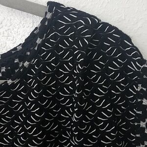 Postmark by Anthropology blouse. Cropped, boxy fit. Sleeveless. Rolled hem at arm holes with accent fabric around arm holes and hem. Pleat at shoulders. Black & white print. Measurements are apx 20.5" armpit to armpit and 21" long. excellent condition.