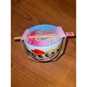 The Powerpuff Girls Rainbow Girl Power Featuring Blossom, Bubbles, and Buttercup Ceramic Ramen Noodle Rice Bowl with Chopsticks, Microwave Safe, 20 Ounces