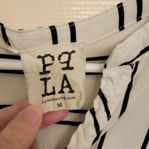 Womans size medium with 38” bust measurement and 32” length from shoulder top to lowest point of bottom hem.