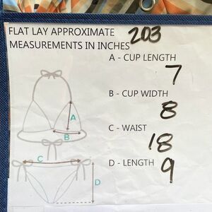 Size XL, flat lay approximate measurements as shown: Cup 7”x8", Waist 18", Bottom length 9"