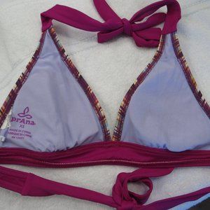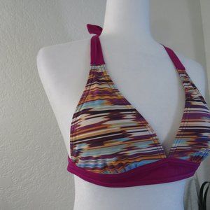 prAna Womens Bikini Top String Tie Striped Purple Aqua Blue Ivory