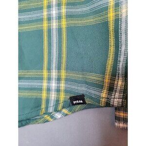 prAna Button Up Flannel Shirt Men's Small Green Yellow Plaid Casual, NWT $79
