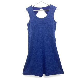 prAna Calico Dress S Cobalt Blue Open Back Built-In Bra Athletic Yoga