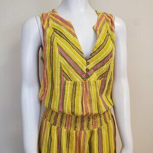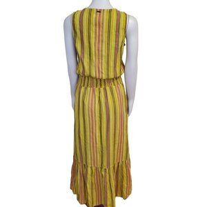 prAna California Dreaming Maxi Dress Organic Cotton Yellow Stripes Sz S colorful