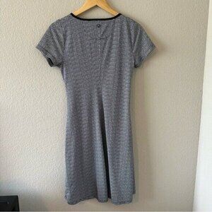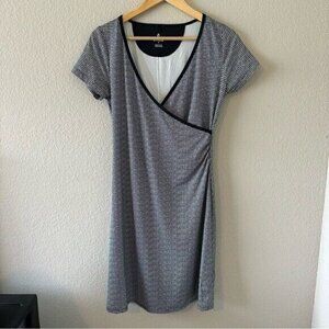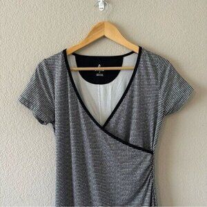 prAna Faux Wrap Dress Black White Short Sleeve Hidden Pocket Stretch Size Small