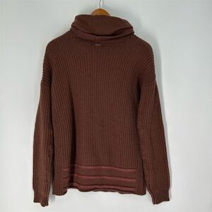 prAna Funen Loop Sweater funnel cowl neck pullover Tunic Brown, size S
