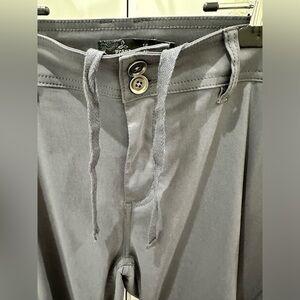 Front hip pockets; left-side coin pocket; back patch pockets with snap closures; on-seam pocket with an invisible zipper closure at wearer's right side